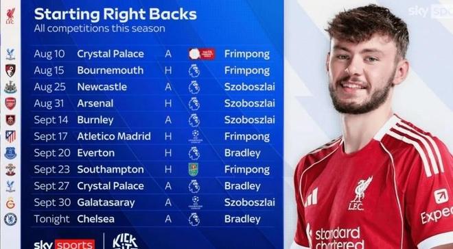 值得一提的是,据天空体育统计,本赛季利物浦没有任何右后卫连续 4 场首发。比如对水晶宫、伯恩茅斯等多场比赛,首发右后卫不断变化,此役则是担任利物浦首发右后卫。